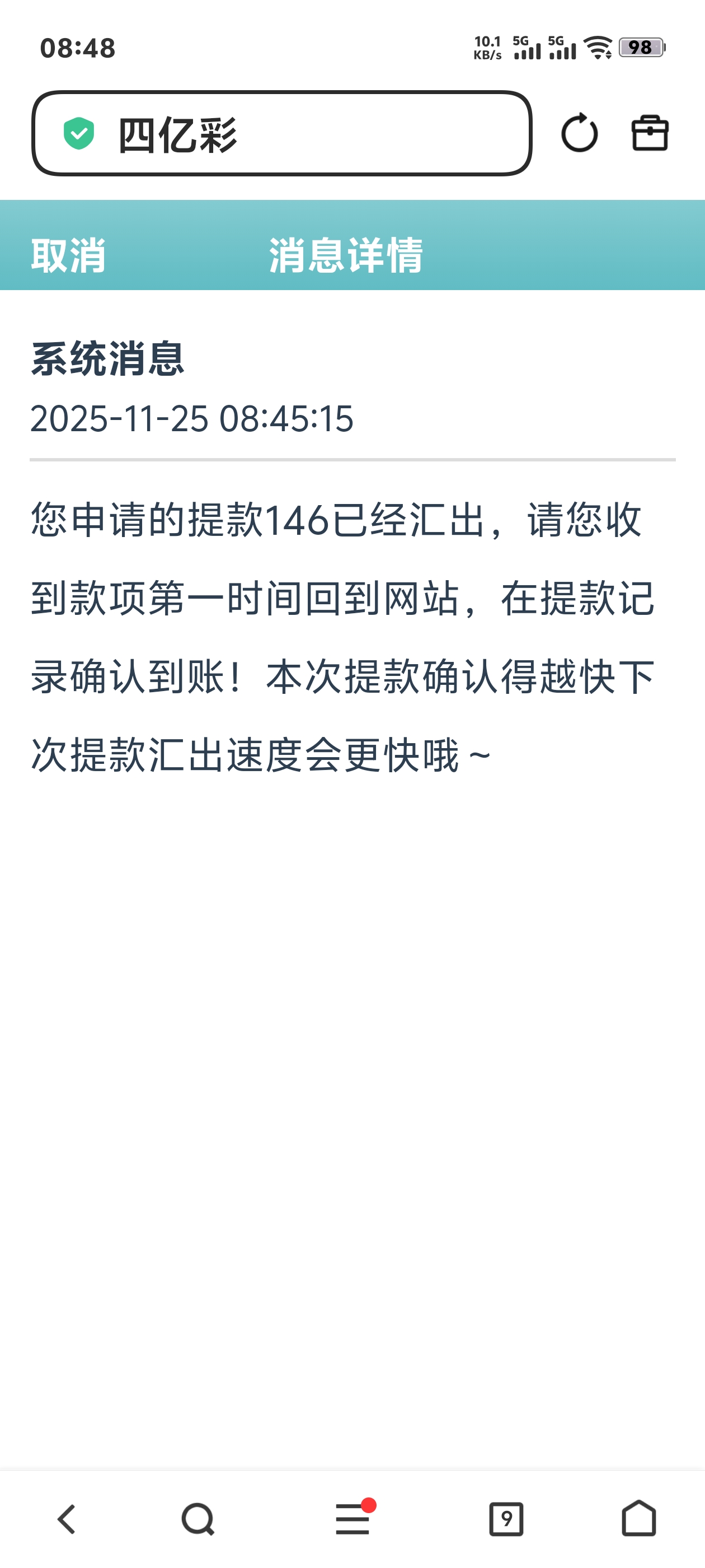 四亿彩注册绑定银行卡和邮箱,活动里找到新用户送41下面有申请模板,直接到账90,141起提,我知道是老白菜,我亲测到账,希望大家也白嫖成功,勿骂