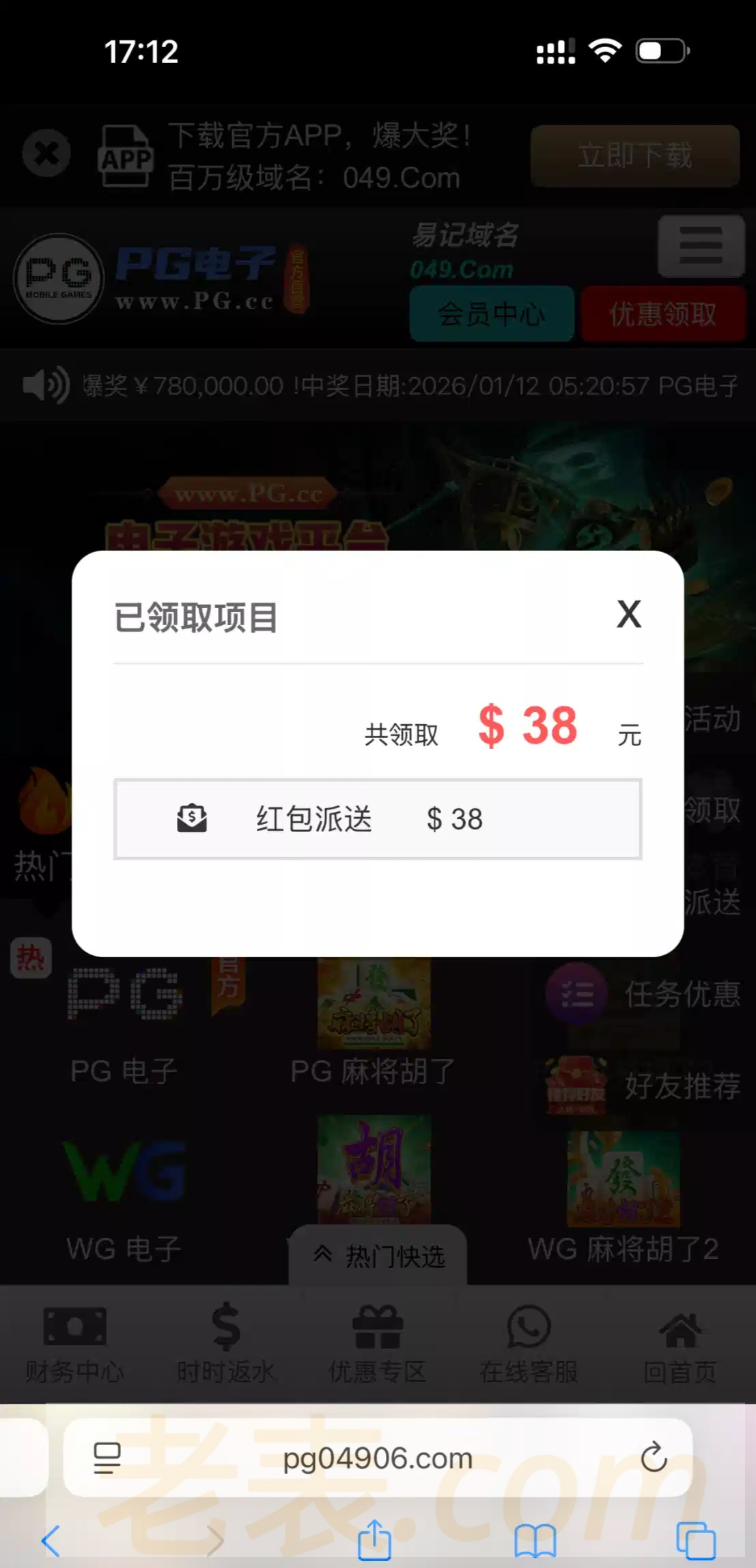 登录上就会弹一个小红包送38