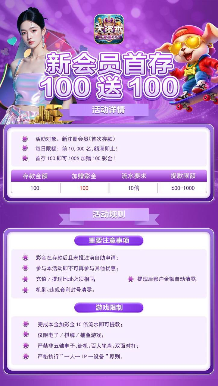 新用户100送100优惠大厅自助领取(具体规则看图)